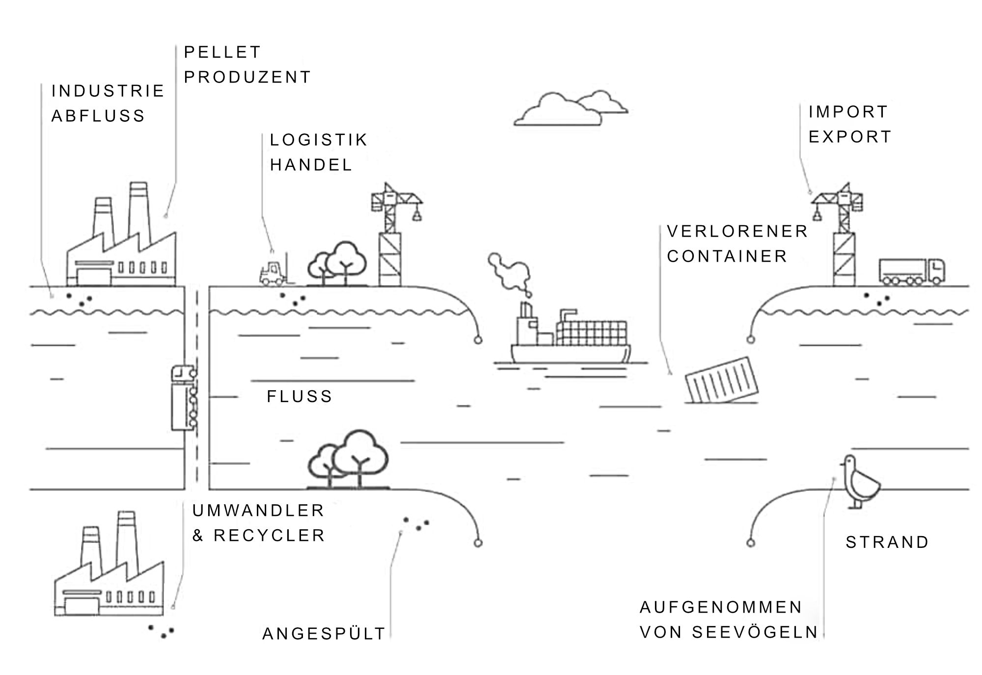 Ein Teil dieses Mülls besteht aus Pellets, die zu Plastikprodukten verarbeitet werden sollen. Die Kunststoffindustrie muss sicherstellen, dass diese Pellets, Flakes und Pulver kontrolliert behandelt werden. Das Programm Operation Clean Sweep® zielt darauf ab, das Einleiten in Wasserläufe und die Umwelt zu verhindern. Trotz strenger Umwelt-, Sicherheits- und Qualitätskontrollen kann es zu unbeabsichtigtem Verlust von Pellets kommen. Daher ist es entscheidend, dass Mitarbeiter, die mit Pellets umgehen, geschult werden, um bei Verschüttungen schnell und angemessen reagieren zu können.